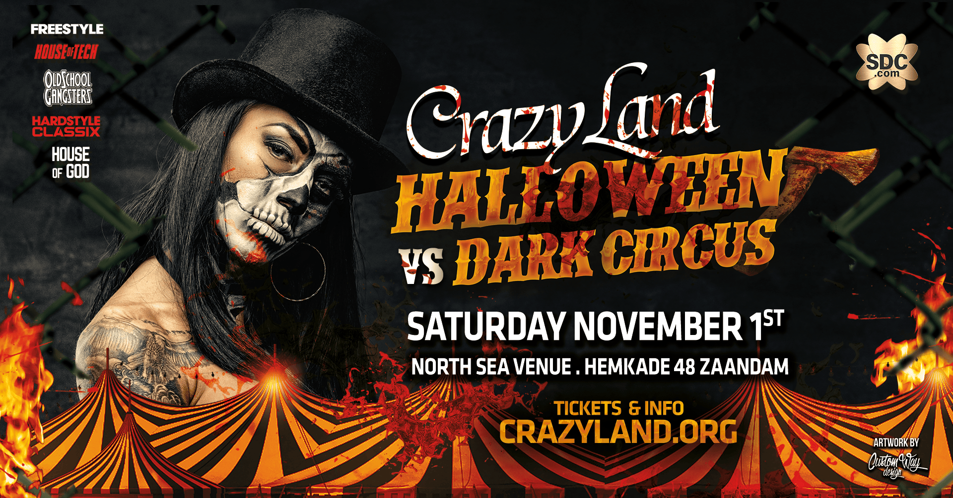 Crazyland 1 november wordt bijzonder. Zo hebben we dikke namen staan als : Mental Theo , Pat B, Erick E, Potato, Rob, Ruffian, Luna, Deepack, Bass D, Ko C, Dr Rude, Pila, Hour Power ( mis deze niet ) , Poco Loco en nog tientallen andere dj’s ! Ook hebben we een visagiste in de entree hal om jullie in het thema te schminken. We hebben acrobaten acts en zoals jullie van ons gewend zijn heel veel entertainment.